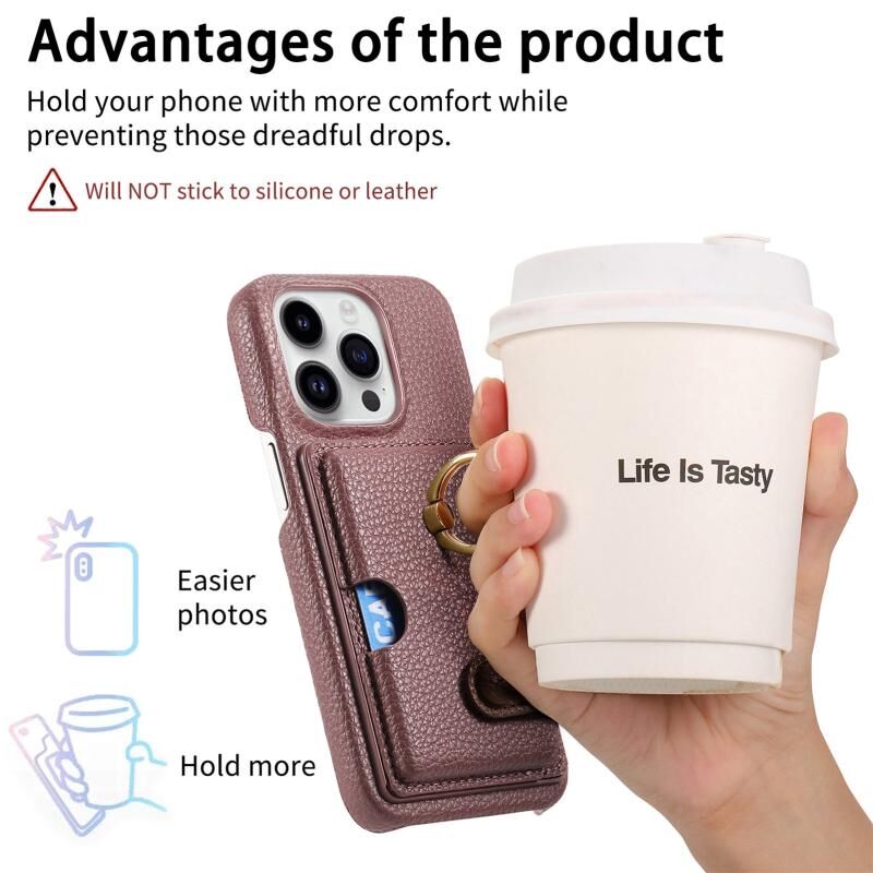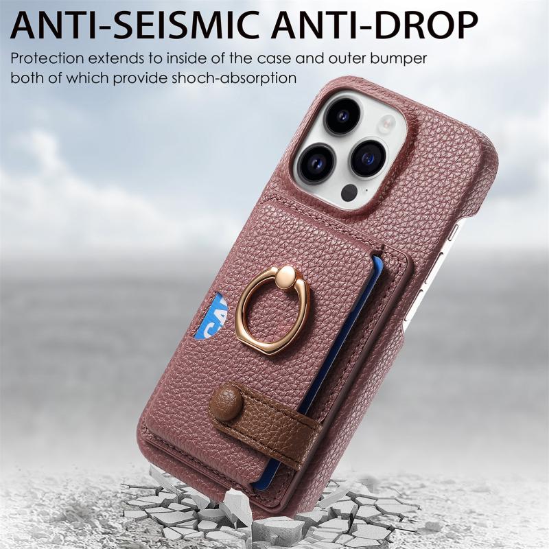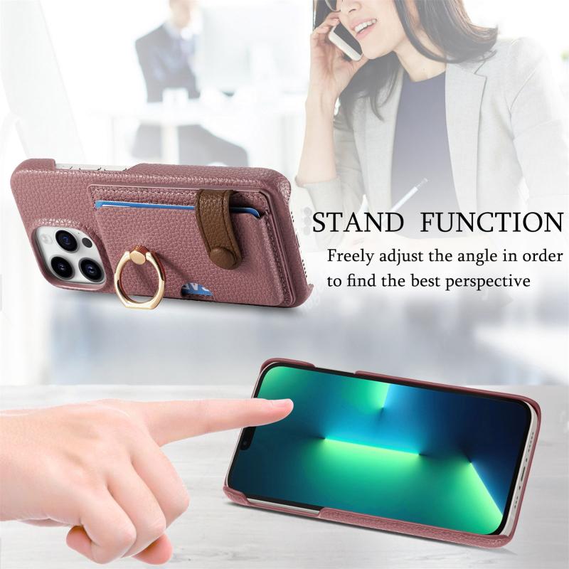 For iPhone 13 Pro Litchi Leather Oil Edge Ring Card Back Phone Case(Jujube apricot)