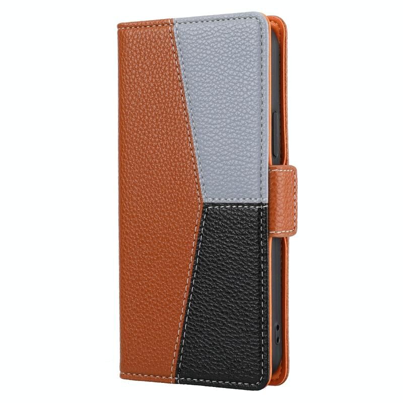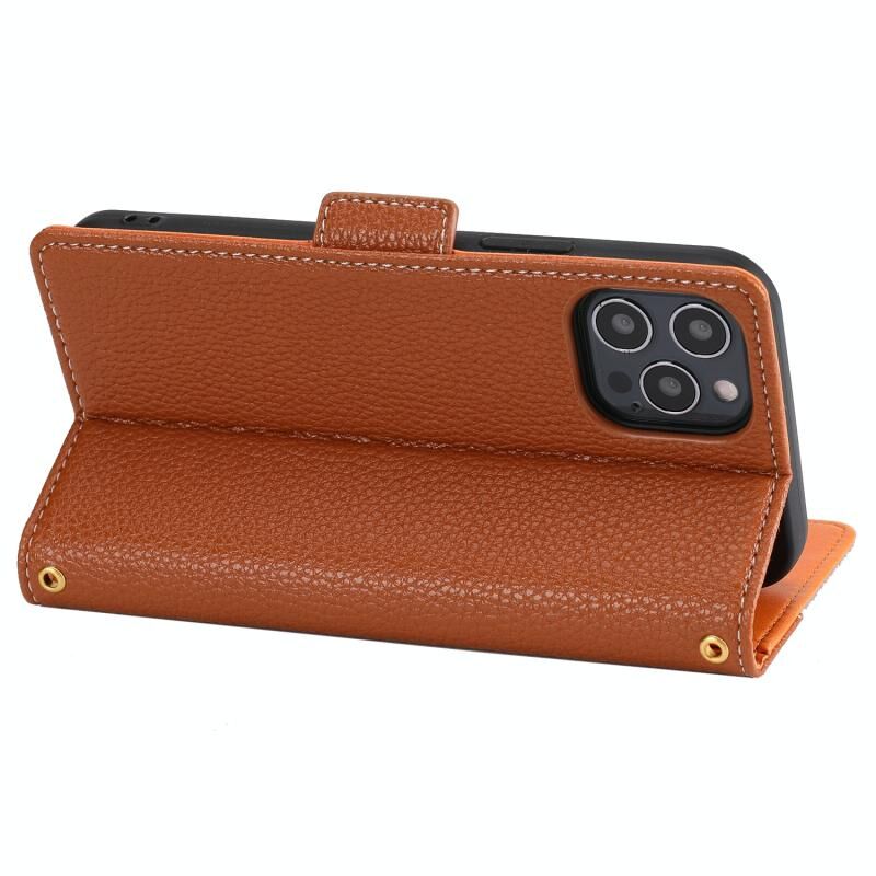 For iPhone 13 Pro Litchi Texture Color Matching Horizontal Flip Leather Case with Card Slots & Holder & Wallet & Photo Frame (Brown)