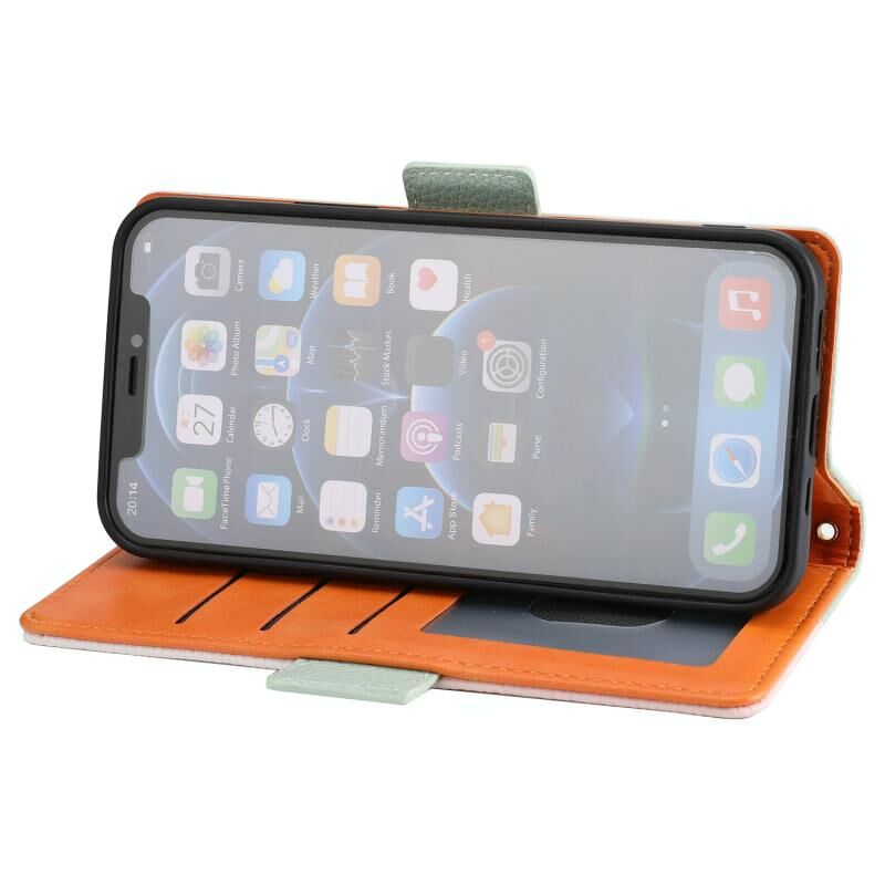 For iPhone 13 Pro Litchi Texture Color Matching Horizontal Flip Leather Case with Card Slots & Holder & Wallet & Photo Frame (Green)