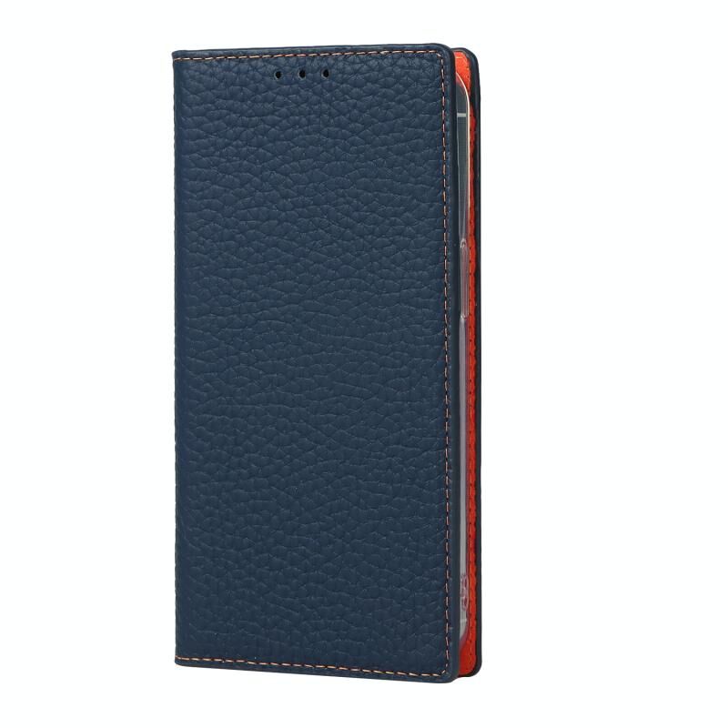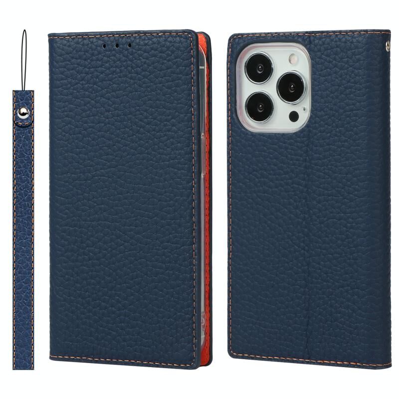 For iPhone 13 Pro Litchi Texture Genuine Leather Phone Case With Lanyard & Holder & Card Slots & Wallet (Dark Blue)
