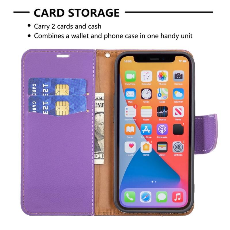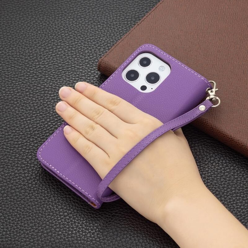 Θήκη δέρματος οριζόντιας αναδίπλωσης για iPhone 13 Pro με υφή Litchi, απλό χρώμα, με βάση, θήκες καρτών, πορτοφόλι και λουρί (Μαύρο)