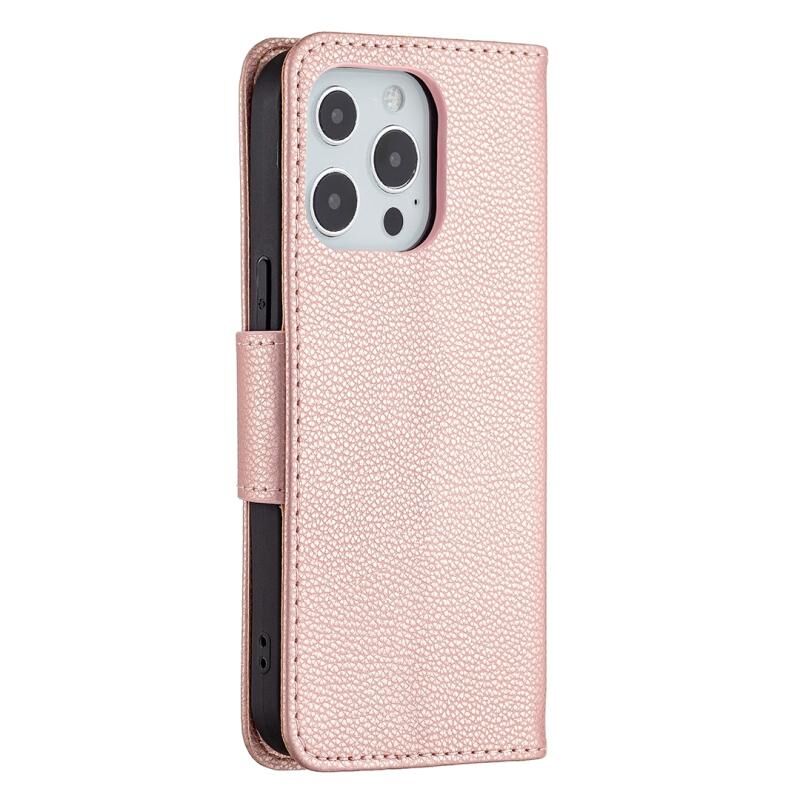 Θήκη δέρματος οριζόντιας αναδίπλωσης για iPhone 13 Pro με υφή Litchi, απλό χρώμα, με βάση, θήκες καρτών, πορτοφόλι και λουρί (Μαύρο)