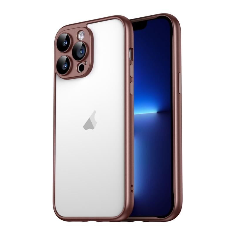 For iPhone 13 Pro Macaron PC Phone Pure Border Frame with Lens Glass Film(Brown)
