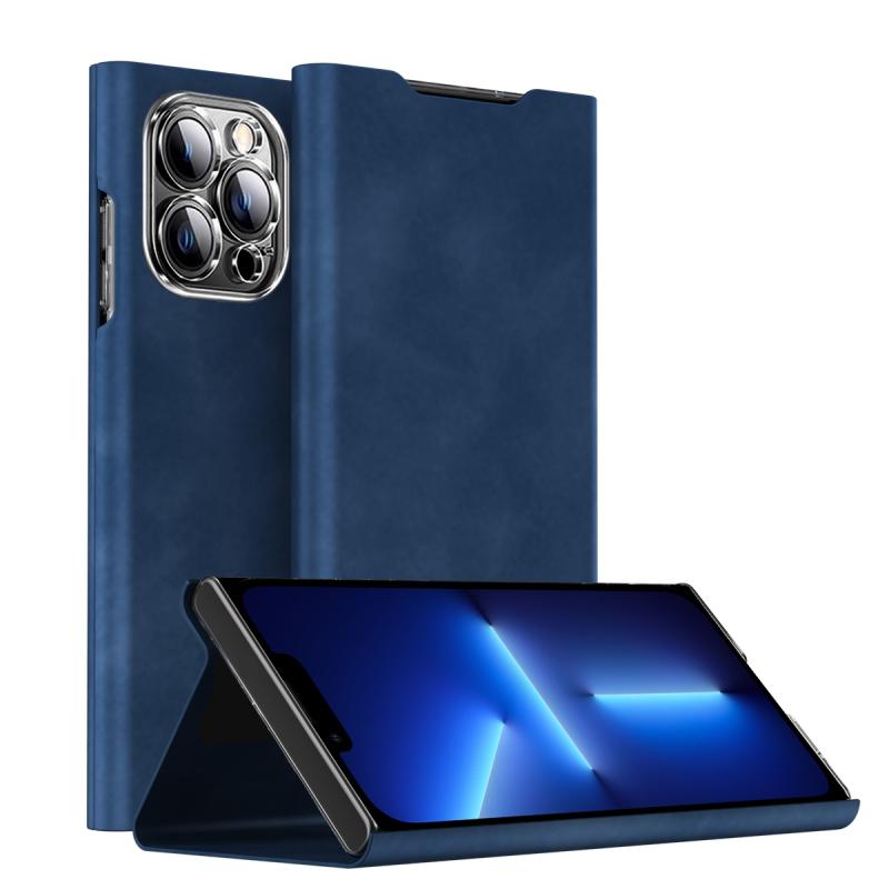 For iPhone 13 Pro Magnetic Napa Texture Leather Phone Case with Holder(Blue)