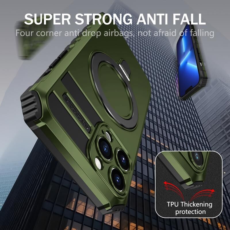 For iPhone 13 Pro MagSafe Magnetic Holder Phone Case(Green)