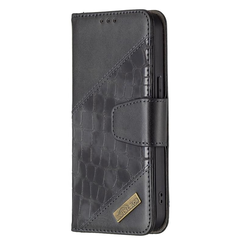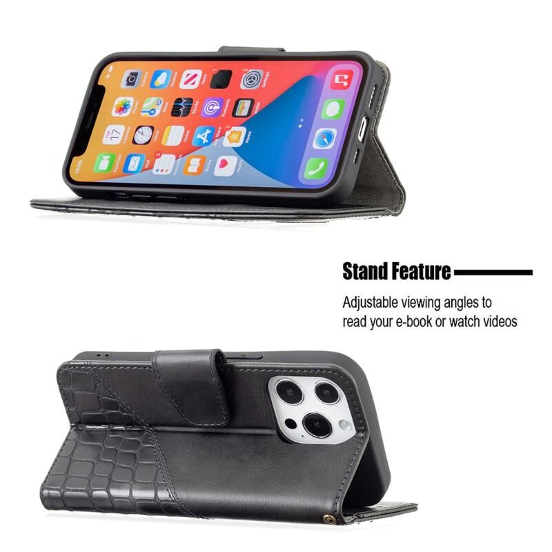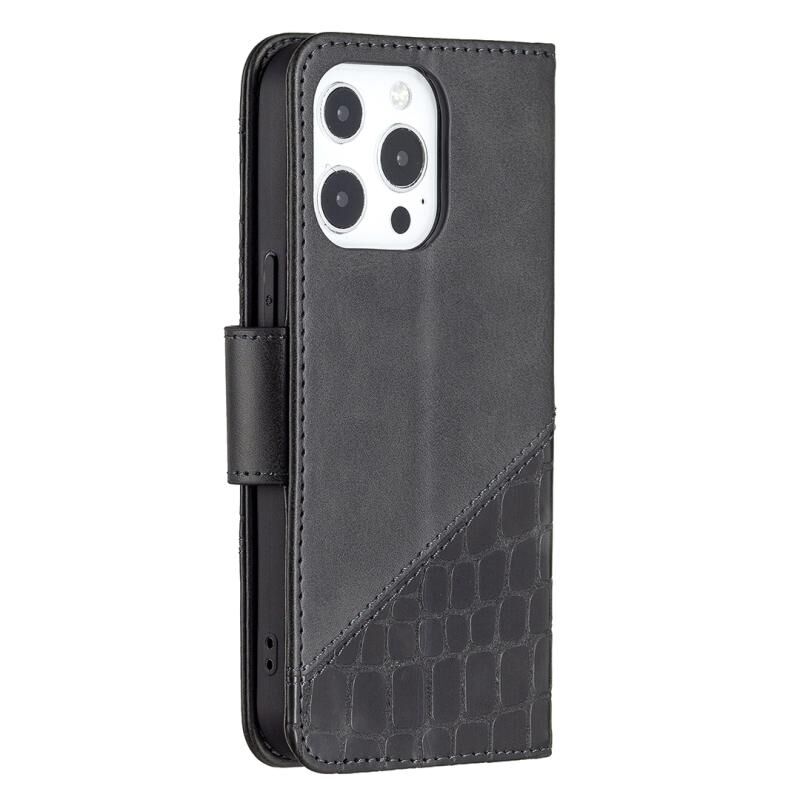 For iPhone 13 Pro Matching Color Crocodile Texture Horizontal Flip PU Leather Case with Wallet & Holder & Card Slots(Black)