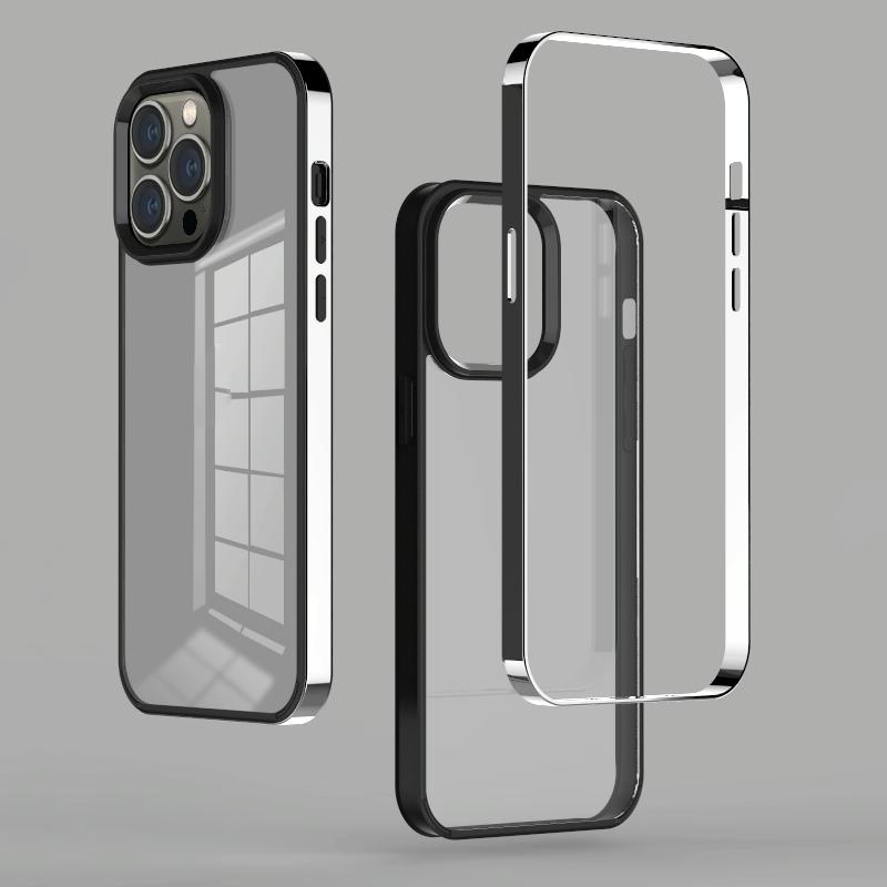 Θήκη iPhone 13 Pro Max με Επιχρυσωμένο Πλαίσιο - 3 σε 1 (Ασημί)