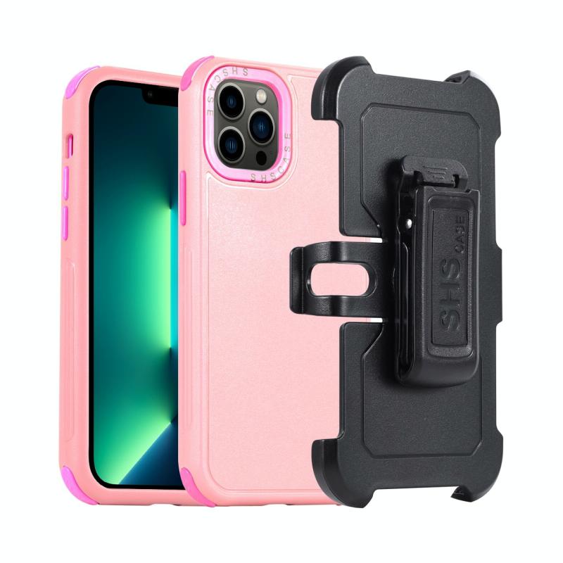 Για iPhone 13 Pro Max Θήκη PC + TPU με Σύστημα Σύρσης 3 σε 1 (Ροζ+Ροζ Κόκκινο)