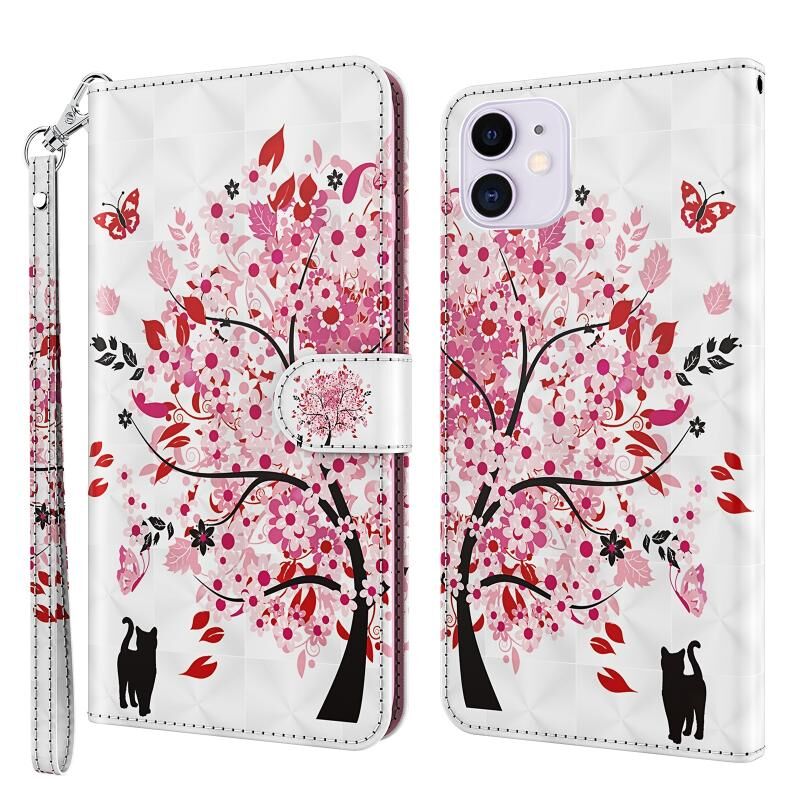 For iPhone 13 Pro Max 3D Painting Pattern Horizontal Flip TPU + PU Leather Case with Holder & Card Slots & Wallet (Cat Under The Tree)
