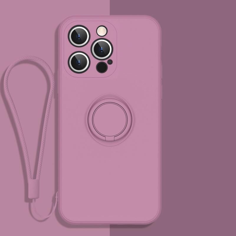 Θήκη Προστασίας Κινητού Υγρής Σιλικόνης All-inclusive για iPhone 13 Pro Max με Δαχτυλίδι Στήριξης & Λουρί (Μωβ Ανθισμένη Κερασιά)