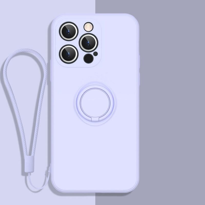 Θήκη Προστασίας Κινητού Υγρής Σιλικόνης All-inclusive για iPhone 13 Pro Max με Δαχτυλίδι Στήριξης & Λουρί (Μωβ Ανθισμένη Κερασιά)