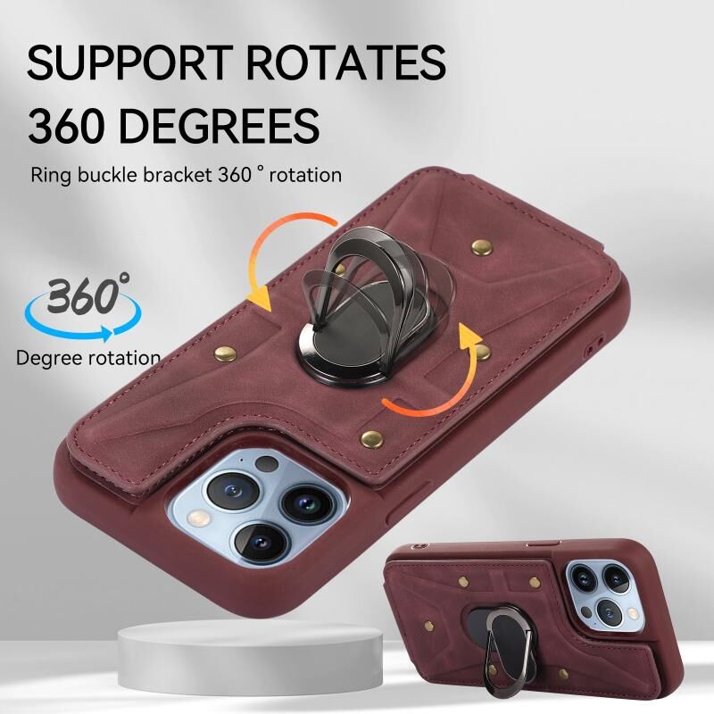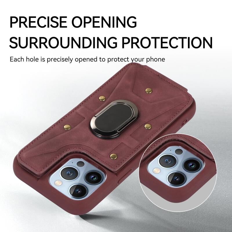 For iPhone 13 Pro Max Armor Ring Wallet Back Cover Phone Case(Wine Red)