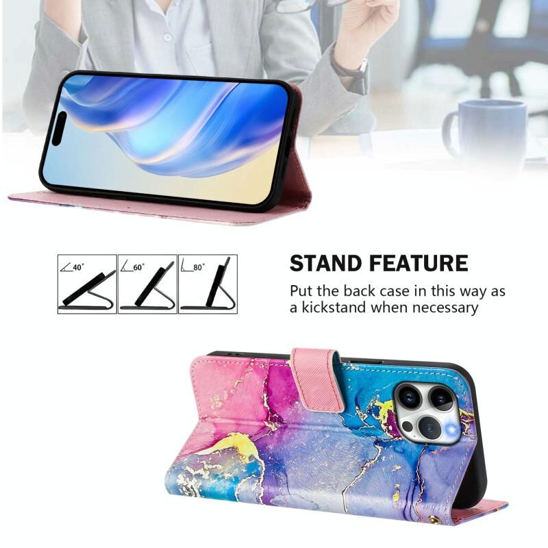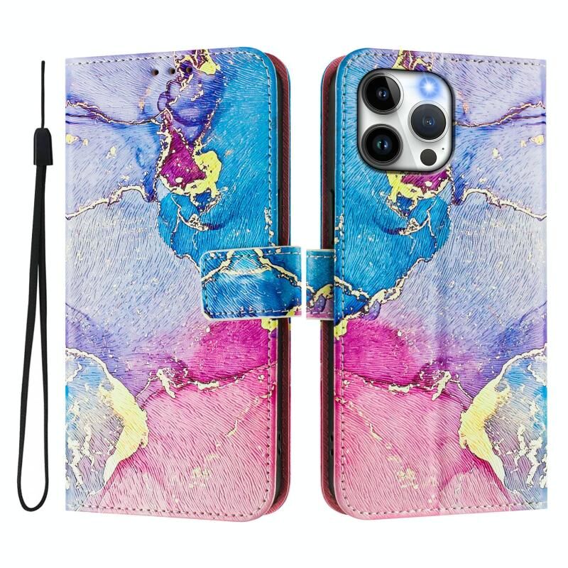 For iPhone 13 Pro Max Art Colored Drawing Pattern Leather Phone Case(Colorful marble)