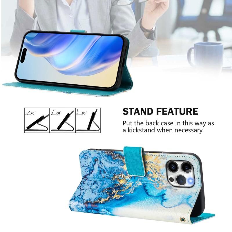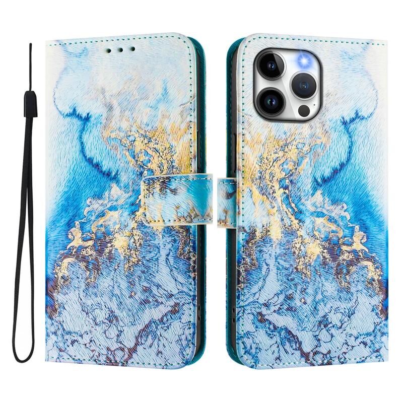 For iPhone 13 Pro Max Art Colored Drawing Pattern Leather Phone Case(Ocean marble)