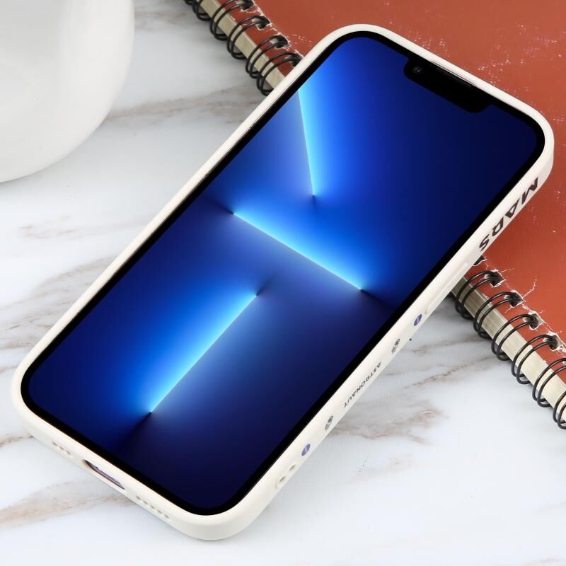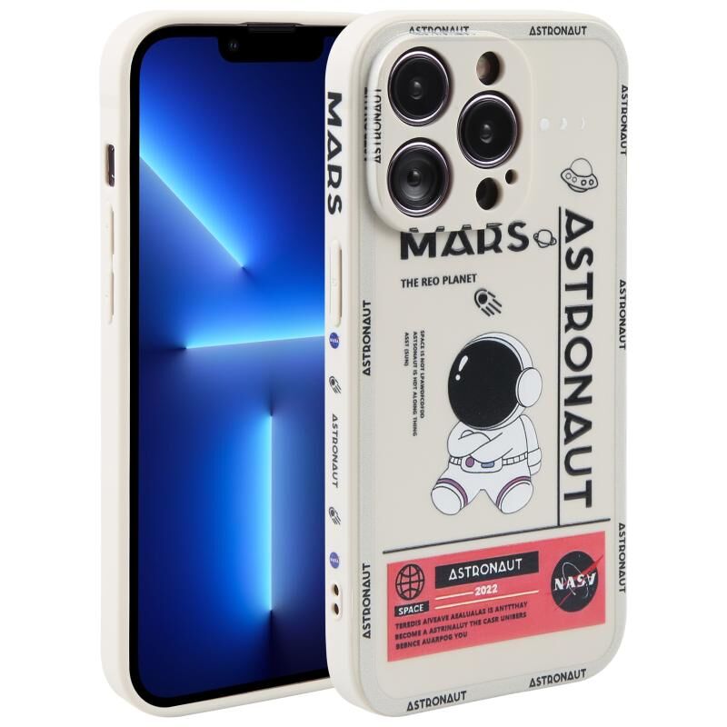 For iPhone 13 Pro Max Astronaut Pattern Silicone Straight Edge Phone Case(Mars Astronaut-White)