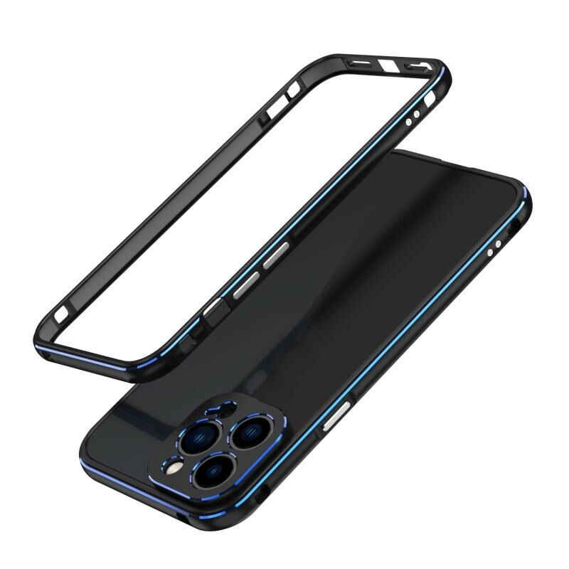 For iPhone 13 Pro Max Aurora Series Lens Protector + Metal Frame Protective Case (Black Blue)