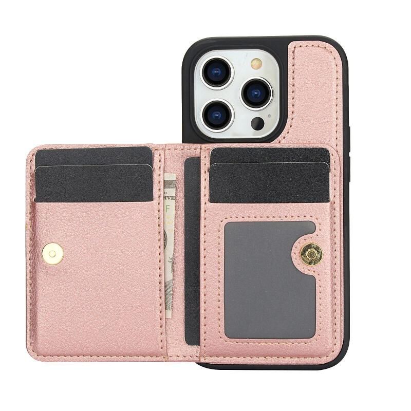 For iPhone 13 Pro Max AwQuer Horizontal Flip Card Bag Holder Leather Phone Case(Rose Gold) (Awquer)