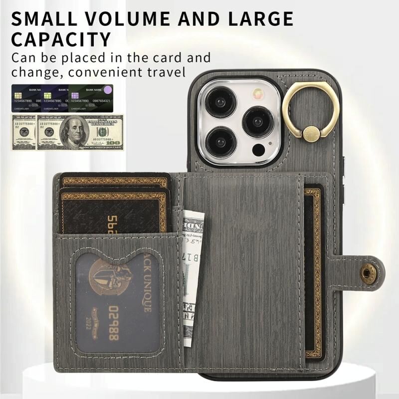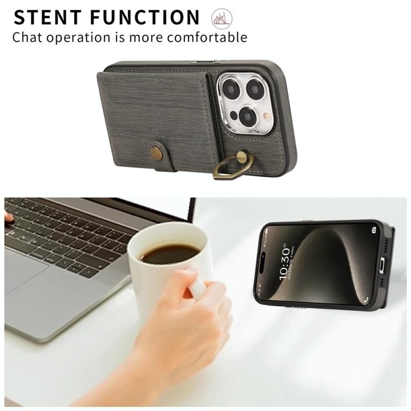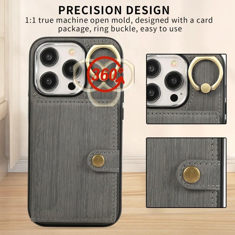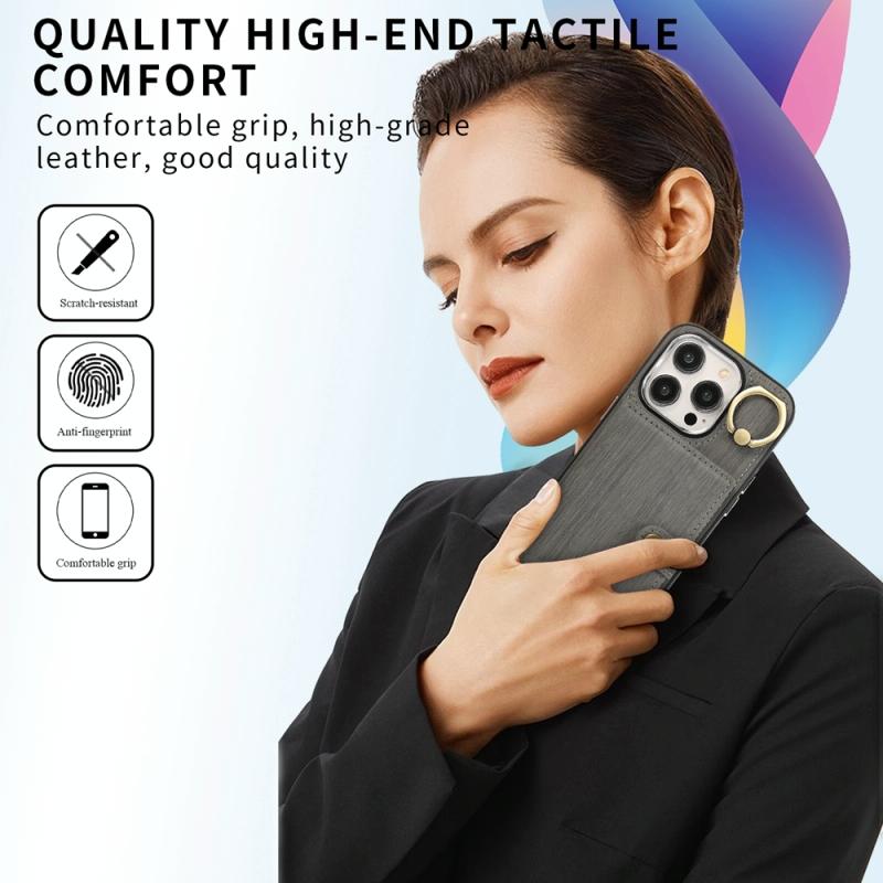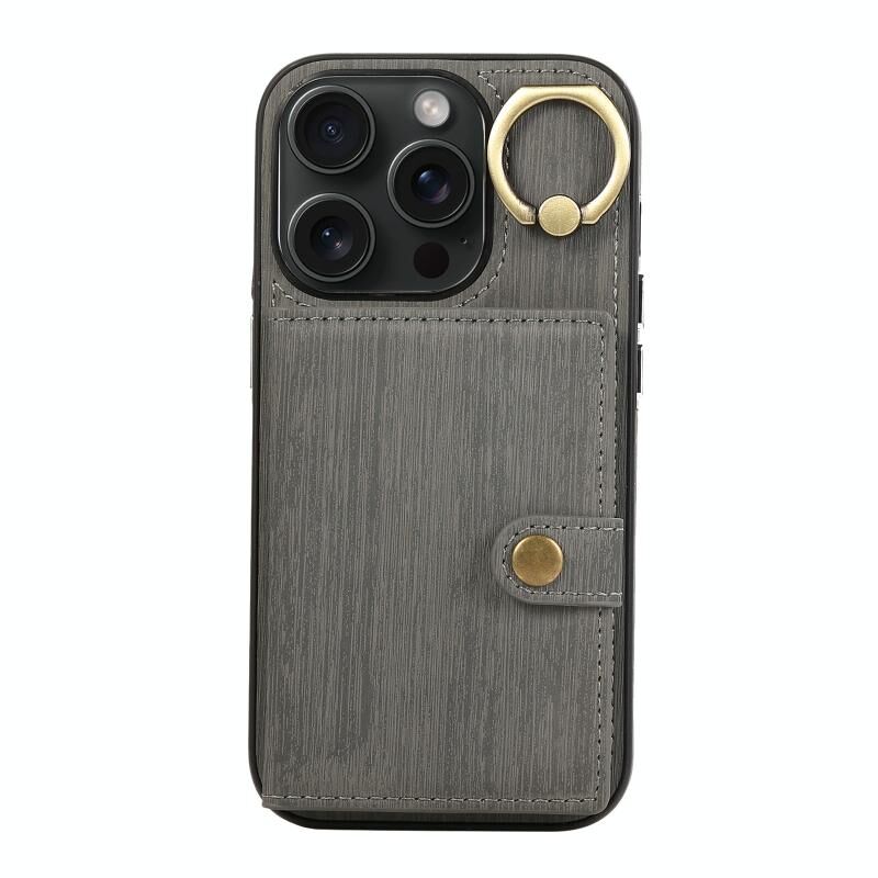 Θήκη iPhone 13 Pro Max με Υφή Βουρτσισμένου Μετάλλου & Λαβή Δακτυλιδιού-Πορτοφόλι (Γκρι)
