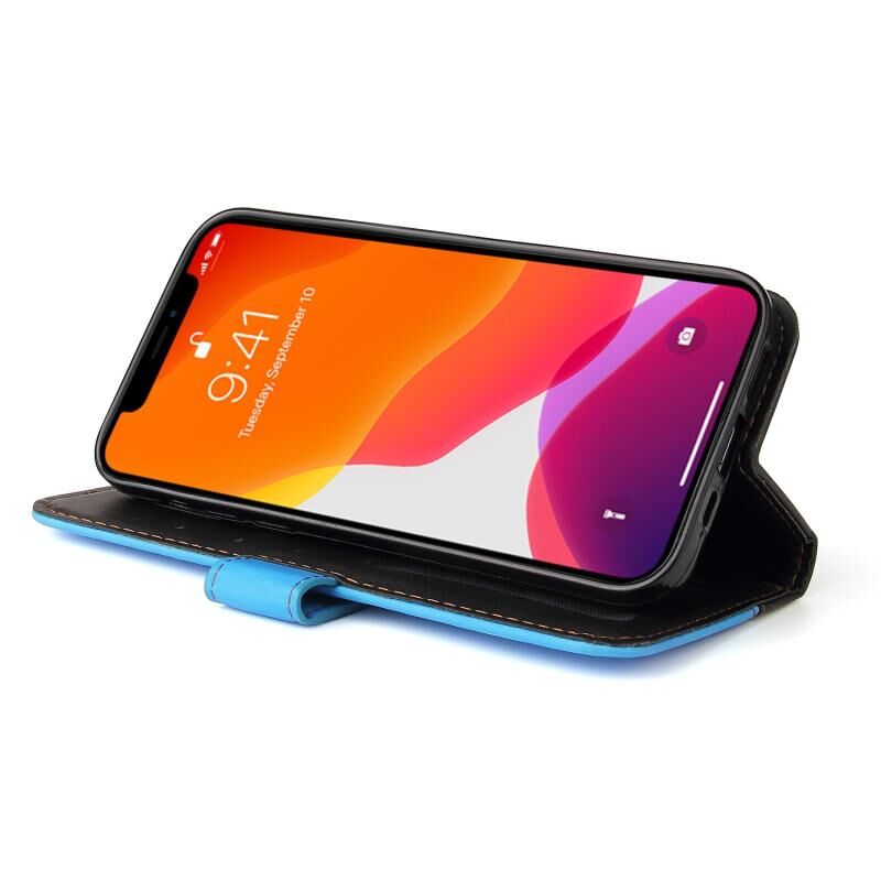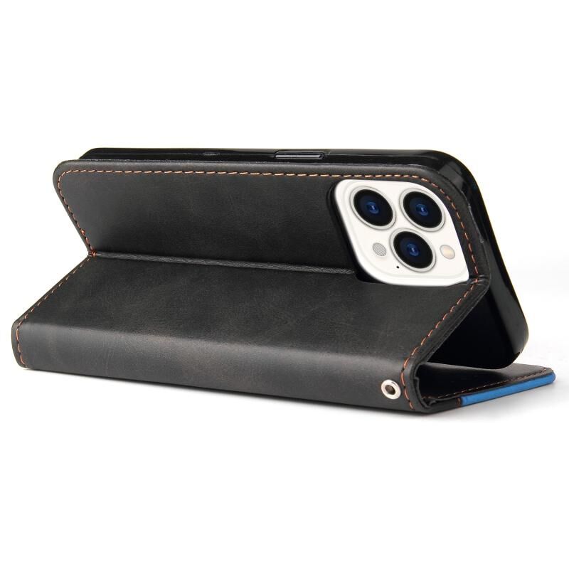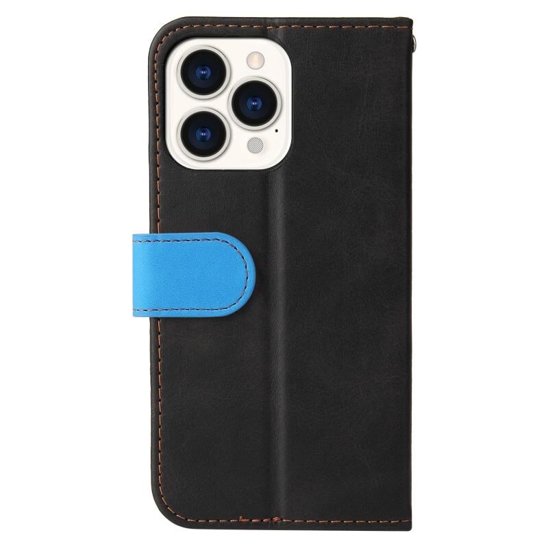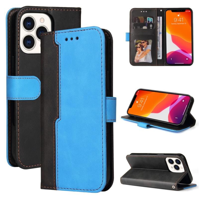 For iPhone 13 Pro Max Business Stitching-Color Horizontal Flip PU Leather Case with Holder & Card Slots & Photo Frame (Blue)