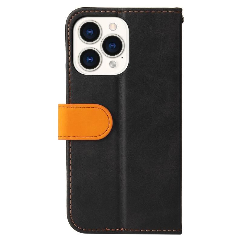For iPhone 13 Pro Max Business Stitching-Color Horizontal Flip PU Leather Case with Holder & Card Slots & Photo Frame (Orange)