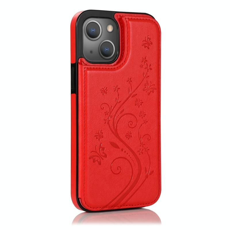 For iPhone 13 Pro Max Butterflies Flowers Double Buckle PU + TPU Protective Case with Holder & Card Slots & Photo Frame (Red)