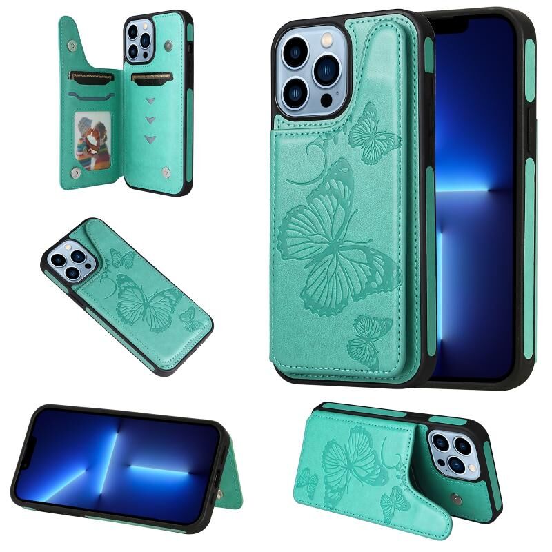 Θήκη κινητού τηλεφώνου για iPhone 13 Pro Max με ανάγλυφο σχέδιο πεταλούδας, αντικραδασμική (Μωβ)