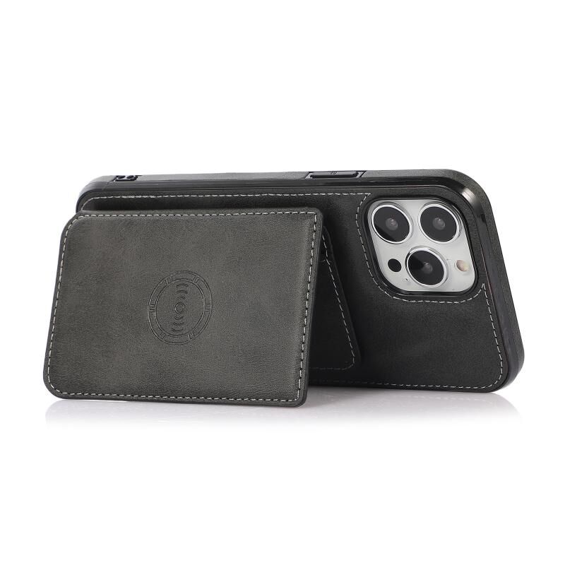 For iPhone 13 Pro Max Calf Texture Magnetic Card Bag PU Shockproof Case with Holder & Card Slot (Black)