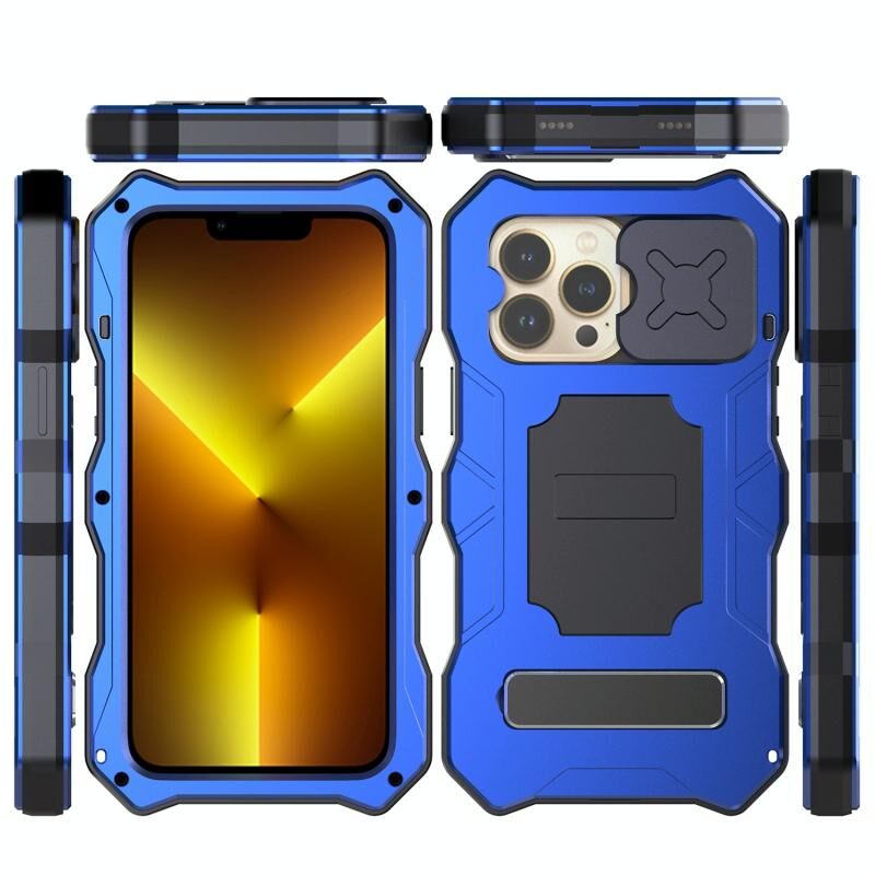 For iPhone 13 Pro Max Camshield Shockproof Life Waterproof Dustproof Metal Case with Holder (Blue)