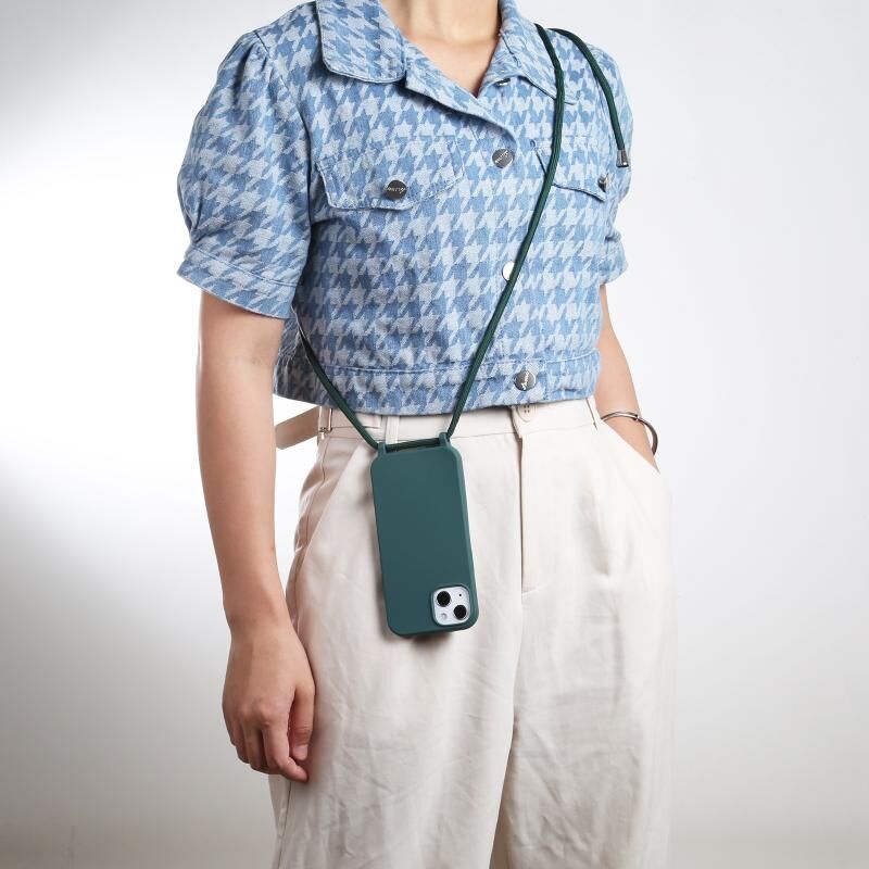 For iPhone 13 Pro Max Candy Colors TPU Protective Case with Lanyard (Dark Green)