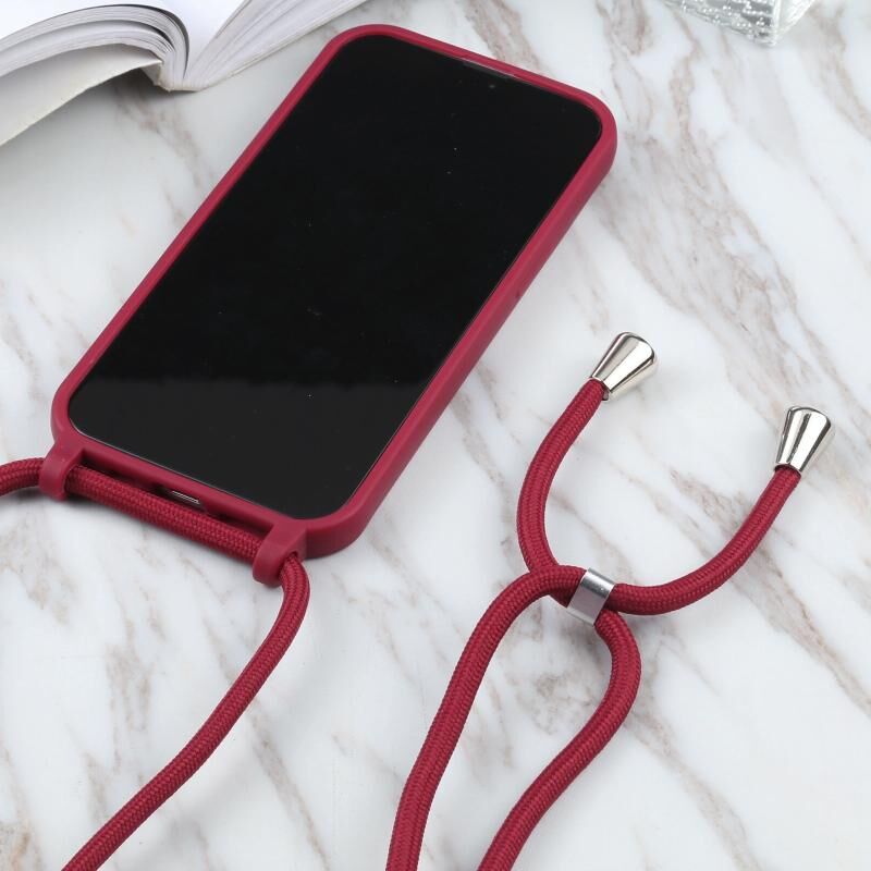 For iPhone 13 Pro Max Candy Colors TPU Protective Case with Lanyard (Red)