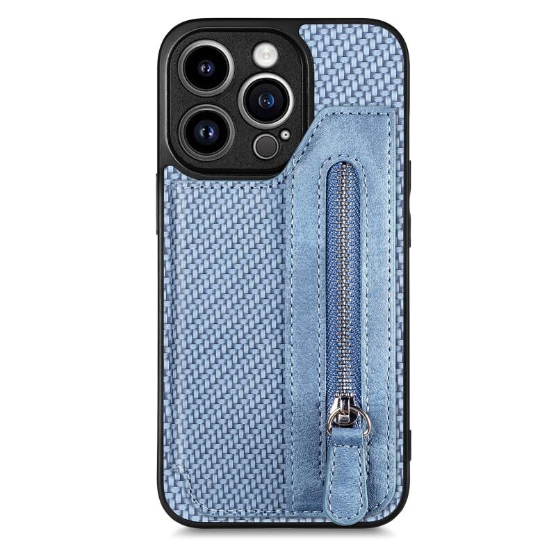 For iPhone 13 Pro Max Carbon Fiber Horizontal Flip Zipper Wallet Phone Case(Blue)