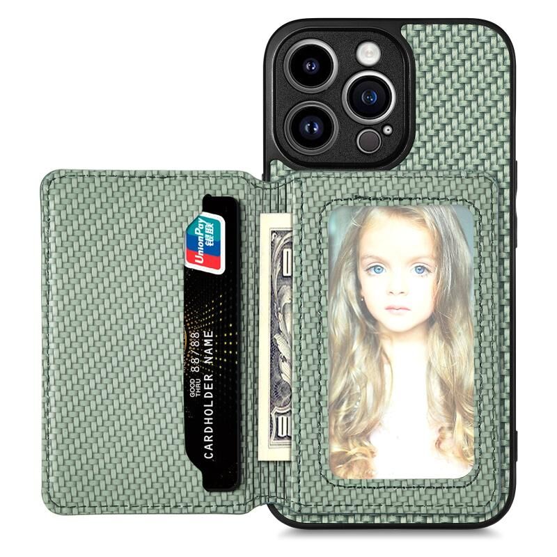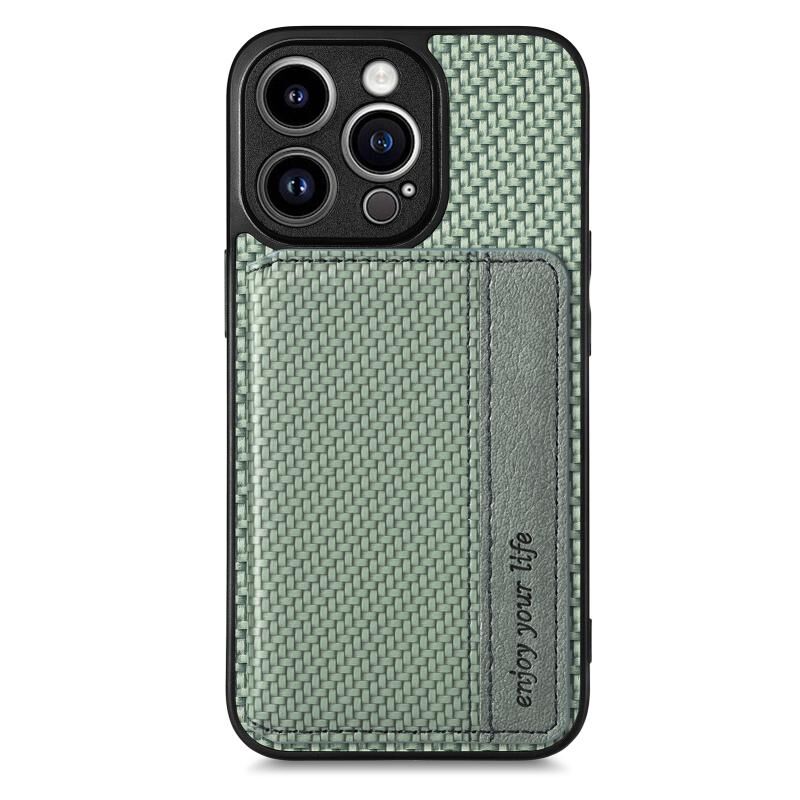 Θήκη τηλεφώνου με μαγνητική τσέπη για κάρτες από ανθρακονήματα για iPhone 13 Pro Max (Μπλε)