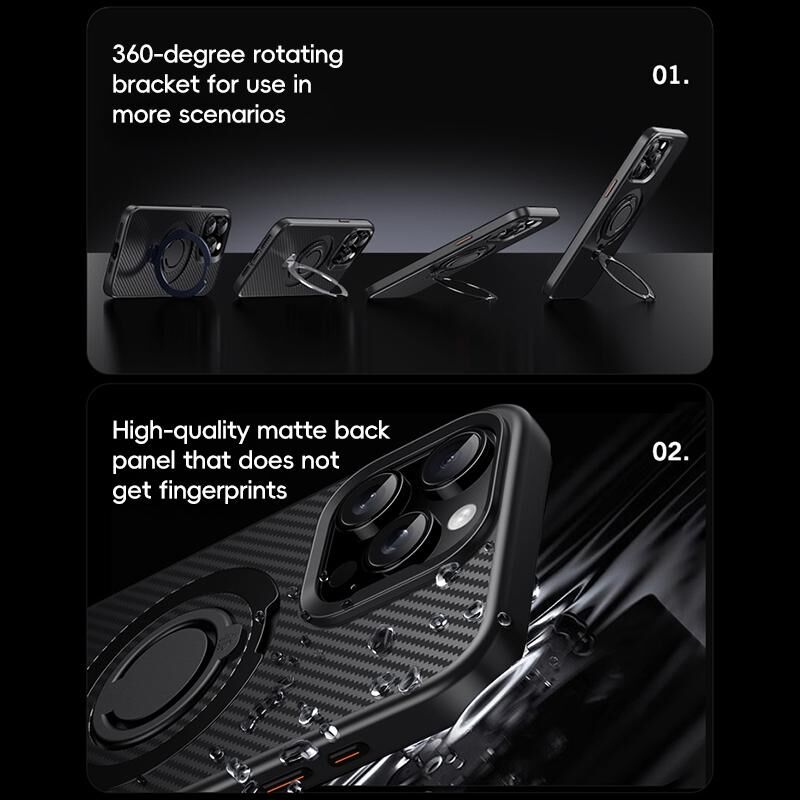 Θήκη τηλεφώνου MagSafe από ανθρακονήματα για iPhone 13 Pro Max με περιστρεφόμενη βάση 360 μοιρών (Μαύρο Γκρι)