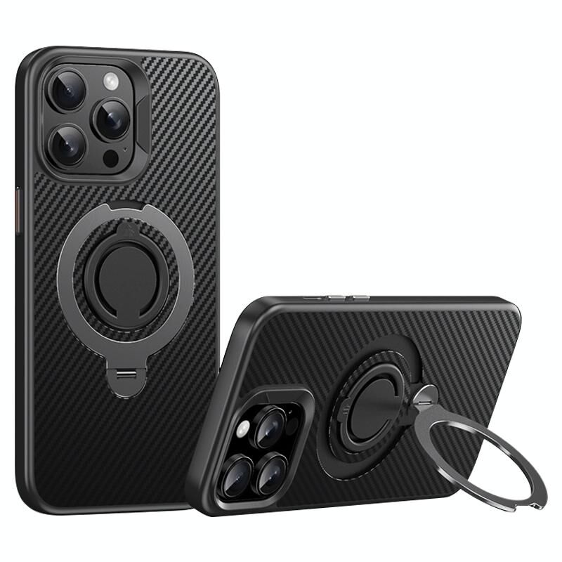 Θήκη τηλεφώνου MagSafe από ανθρακονήματα για iPhone 13 Pro Max με περιστρεφόμενη βάση 360 μοιρών (Μαύρο Γκρι)