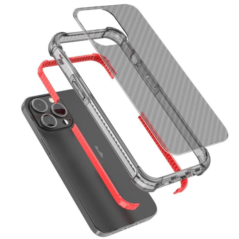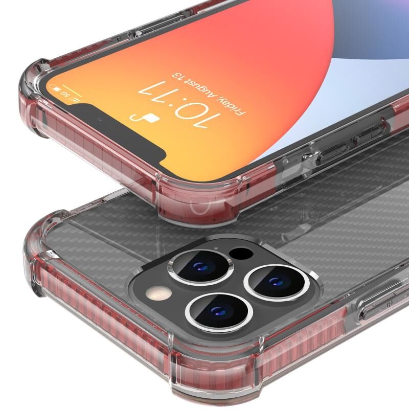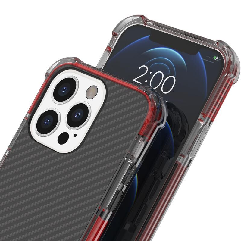For iPhone 13 Pro Max Carbon Fiber Texture Four-corner Shockproof Phone Case (Red)