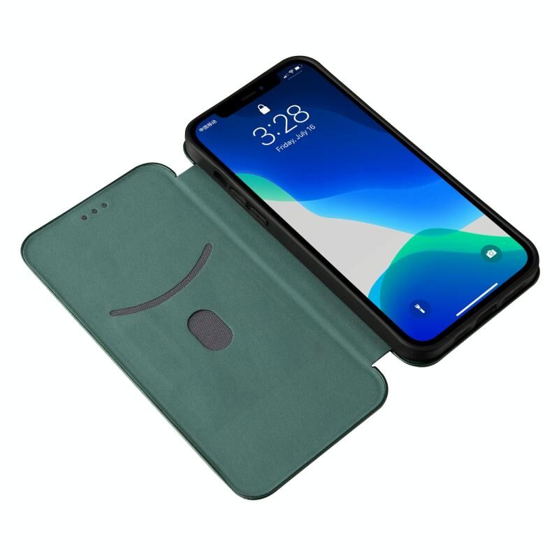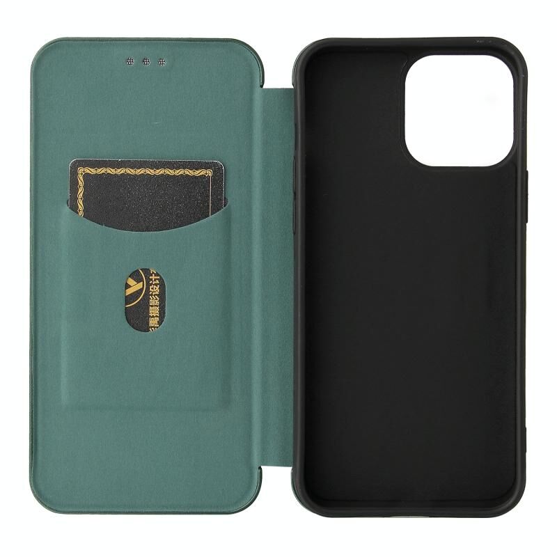 For iPhone 13 Pro Max Carbon Fiber Texture Horizontal Flip TPU + PC + PU Leather Case with Card Slot (Green)