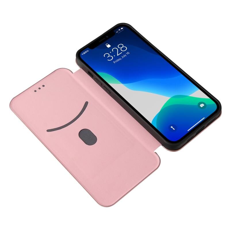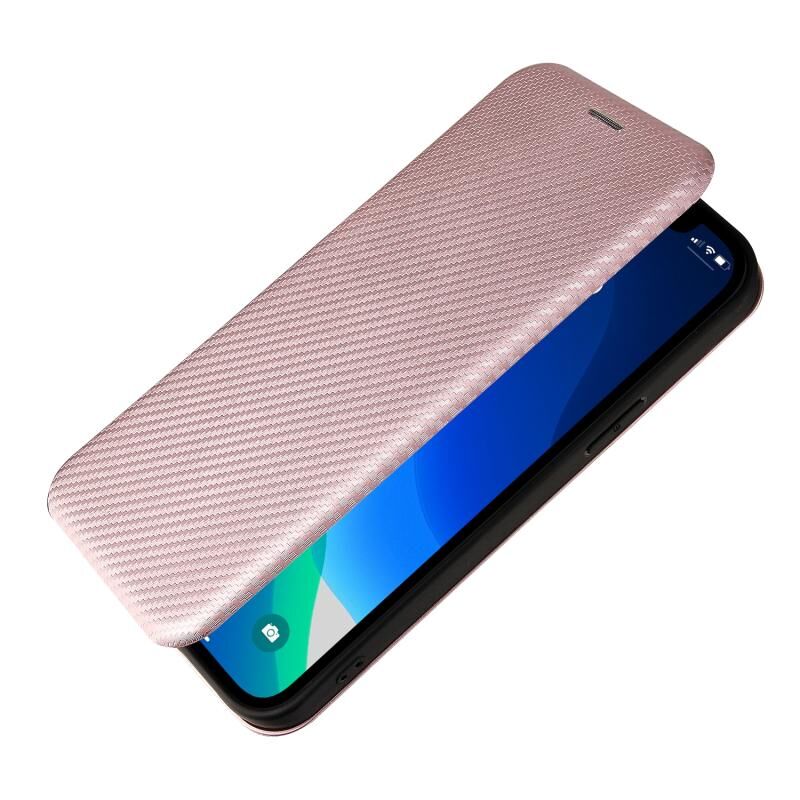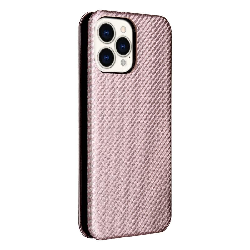 For iPhone 13 Pro Max Carbon Fiber Texture Horizontal Flip TPU + PC + PU Leather Case with Card Slot (Pink)