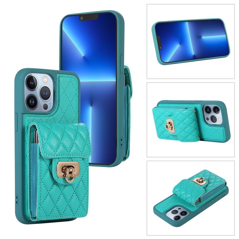 For iPhone 13 Pro Max Card Slot Leather Phone Case(Mint Green)