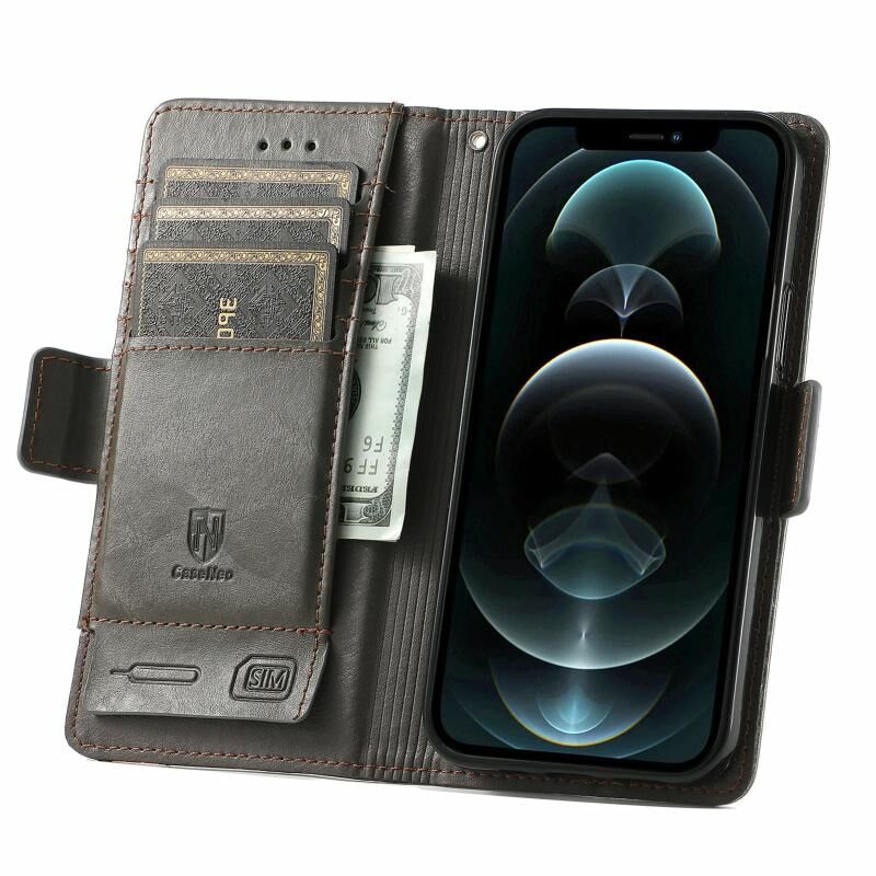 For iPhone 13 Pro Max CaseNeo Business Splicing Dual Magnetic Buckle Horizontal Flip PU Leather Case with Holder & Card Slots & Wallet (Grey)