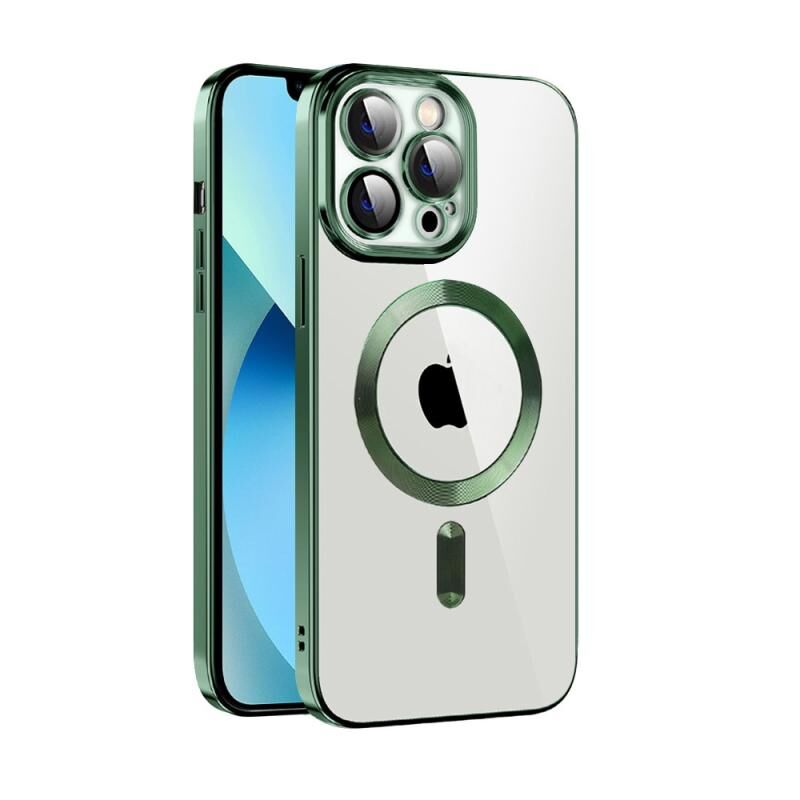 For iPhone 13 Pro Max CD Texture Plating TPU MagSafe Phone Case with Lens Film(Dark Green)