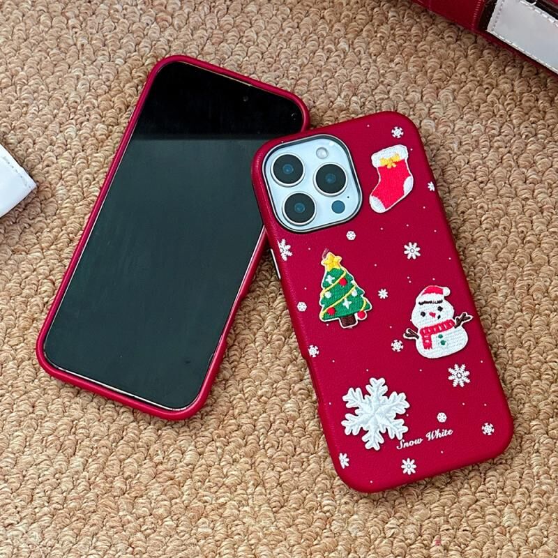 For iPhone 13 Pro Max Christmas Series Frosted PC Hybrid TPU Leather Phone Case(Snowflakes)
