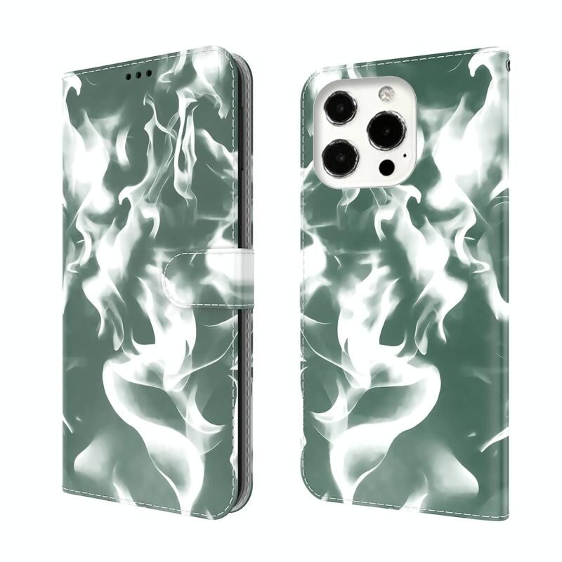 For iPhone 13 Pro Max Cloud Fog Pattern Horizontal Flip Leather Case with Holder & Card Slot & Wallet (Dark Green)