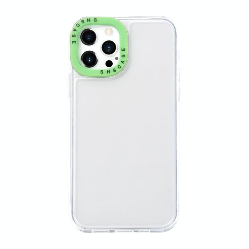 For iPhone 13 Pro Max Color Contrast Lens Frame Transparent TPU Phone Case (Transparent + Green)