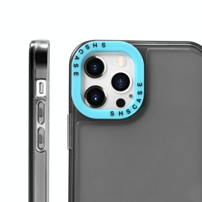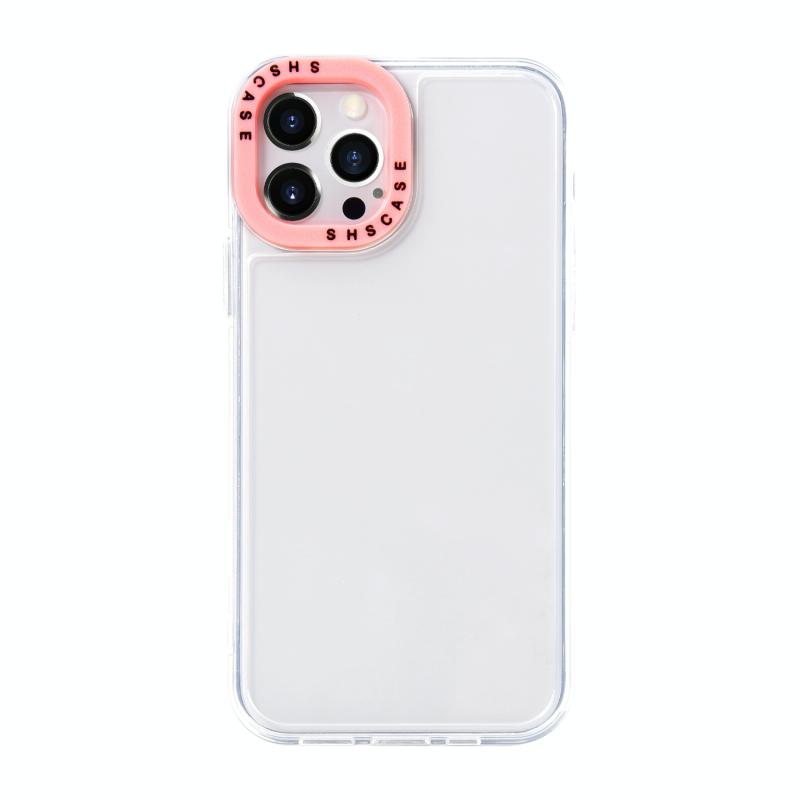 For iPhone 13 Pro Max Color Contrast Lens Frame Transparent TPU Phone Case (Transparent + Light Pink)