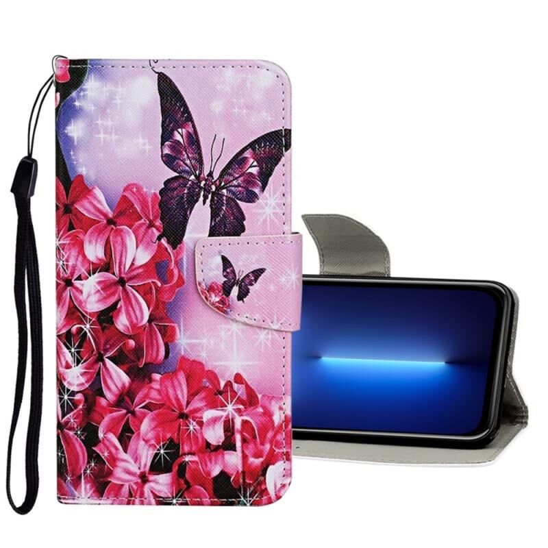 Θήκη δέρματος τύπου flip με σχέδιο πολύχρωμης ζωγραφικής για iPhone 13 Pro Max (Κόκκινο Λουλούδι Πεταλούδα)