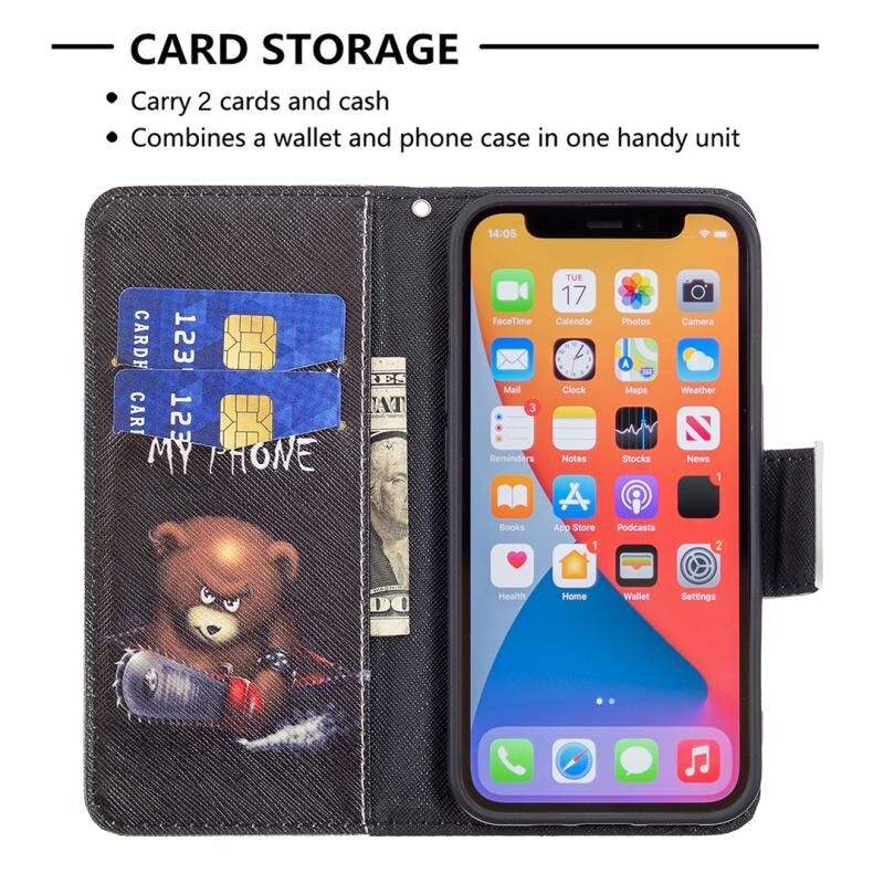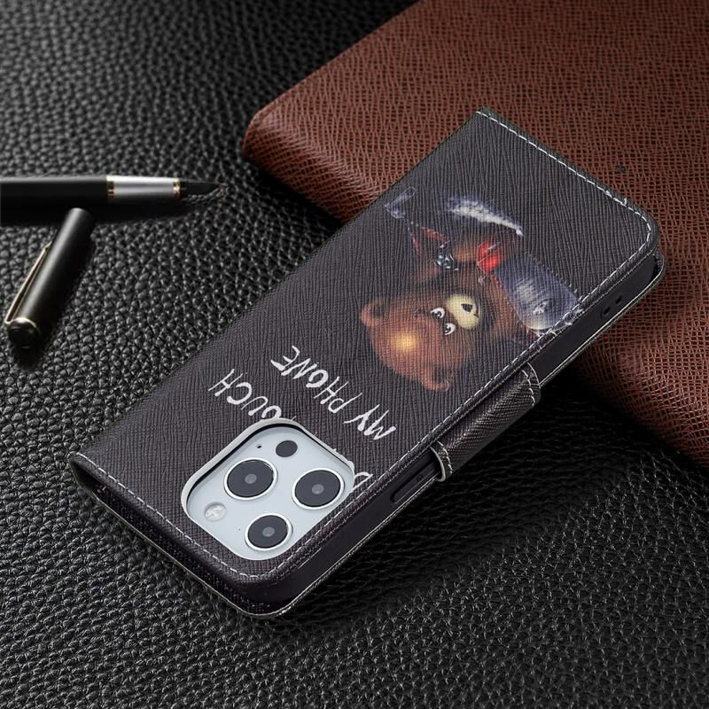 For iPhone 13 Pro Max Colored Drawing Pattern Horizontal Flip Leather Case with Holder & Card Slots & Wallet (Bear)