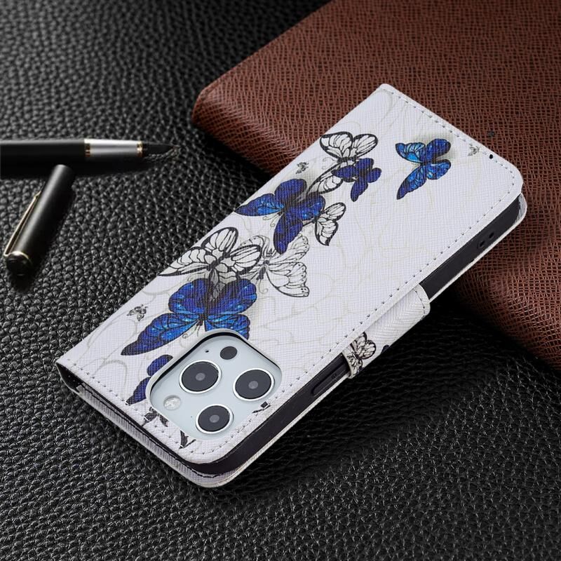 For iPhone 13 Pro Max Colored Drawing Pattern Horizontal Flip Leather Case with Holder & Card Slots & Wallet (Butterflies)