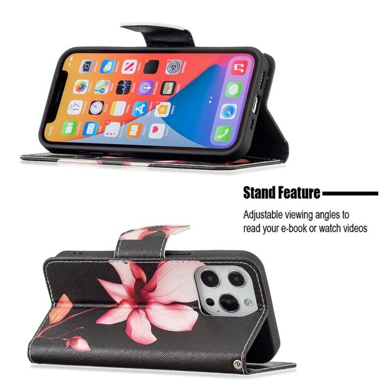 For iPhone 13 Pro Max Colored Drawing Pattern Horizontal Flip Leather Case with Holder & Card Slots & Wallet (Lotus)