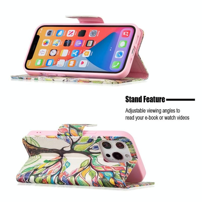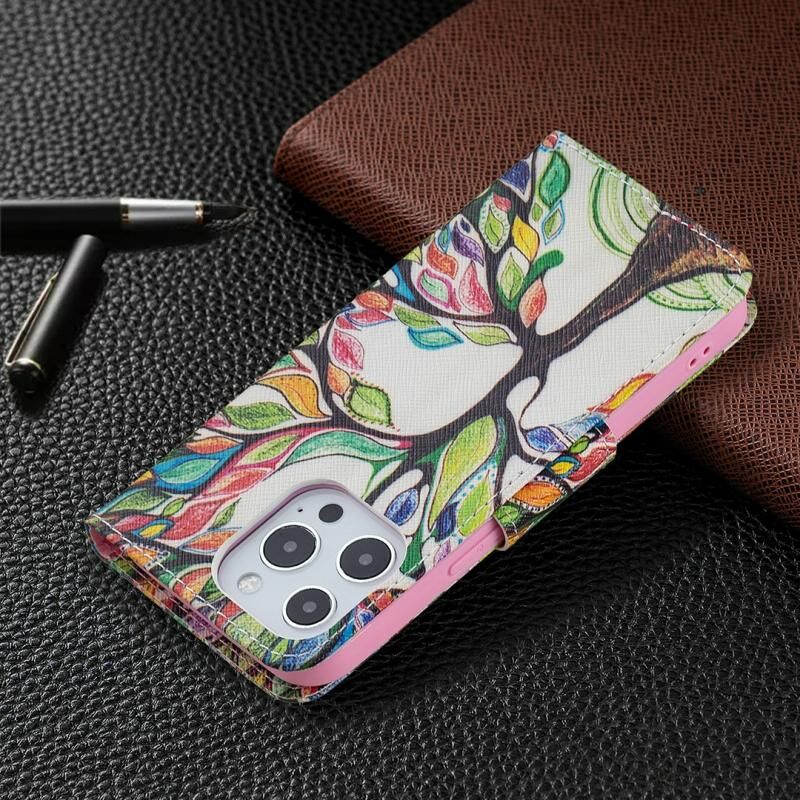 For iPhone 13 Pro Max Colored Drawing Pattern Horizontal Flip Leather Case with Holder & Card Slots & Wallet (Tree of Life)
