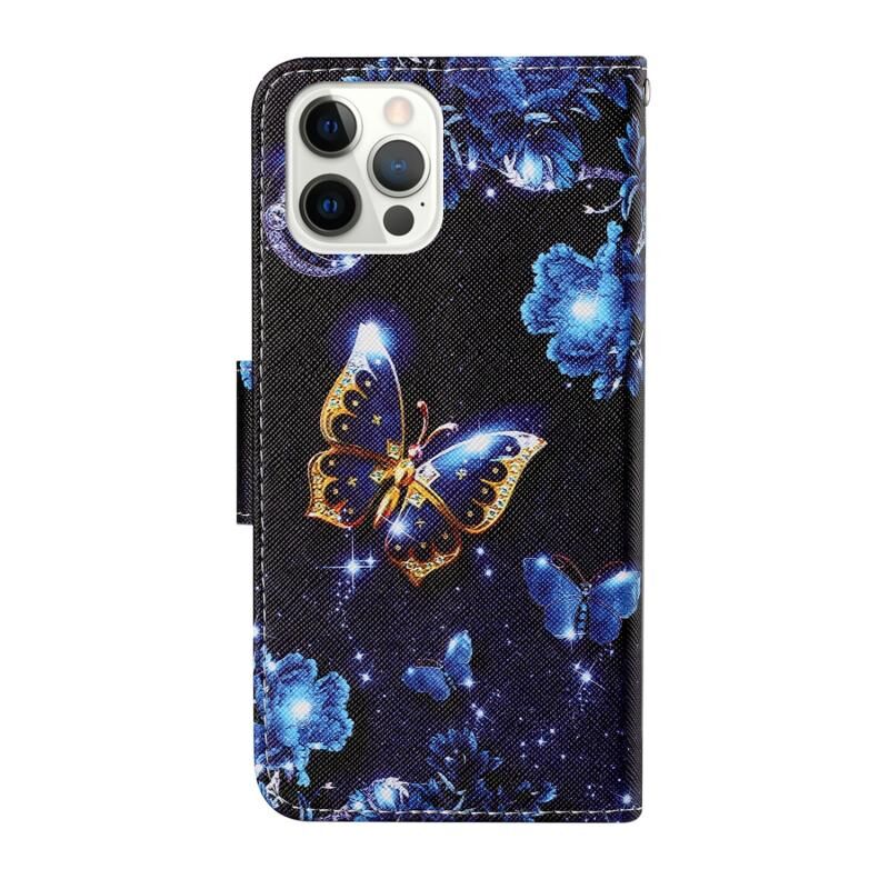 Θήκη τηλεφώνου από δέρμα με οριζόντιο άνοιγμα για iPhone 13 Pro Max με έγχρωμο σχέδιο (Σεληνιακή Πεταλούδα)